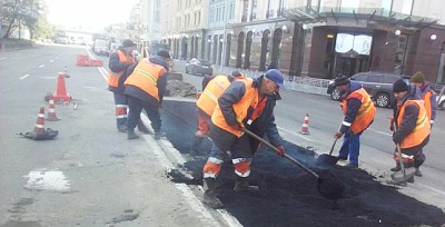 Крім того, шляховики продовжують роботи з улаштування фігурних елементів мощення на тротуарі, що на вулиці Щекавицька.