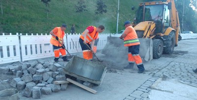 - на вулиці Володимирській узвіз триває укладання бруківки та заливки швів.