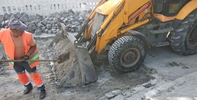 - на вулиці Володимирській узвіз триває укладання бруківки та заливки швів.