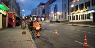 Так, в період 3 до 10 сепня дорожники виконували роботи із заливки тріщин установкою «Крафко» на проспекті Правди, з поточного (дрібного) ремонту на вулицях Введенській, Межигірській, Григорія Сковороди, Контрактовій площі, з влаштування острівця безпеки на проспекті Георгія Гонгадзе, з ліквідації аварійно-небезпечної ямковості на вулиці Білицькій.