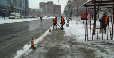 Не припиняються роботи і з механізованої та ручної обробки протиожеледними матеріалами наземних пішохідних переходів, тротуарів та зупинок громадського транспорту.