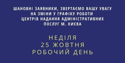 «Усі Центри надання адміністративних послуг міста Києва працюватимуть навіть у день виборів – 25 жовтня. У разі, якщо з якихось причин ви не змогли записатися в електронну чергу, ви все одно отримаєте паспорт, особисто звернувшись у ЦНАП», – пояснила Наталія Шамрай.