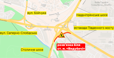 Цими вихідними обмежать рух транспорту на розв’язці біля ст. м. «Видубичі»