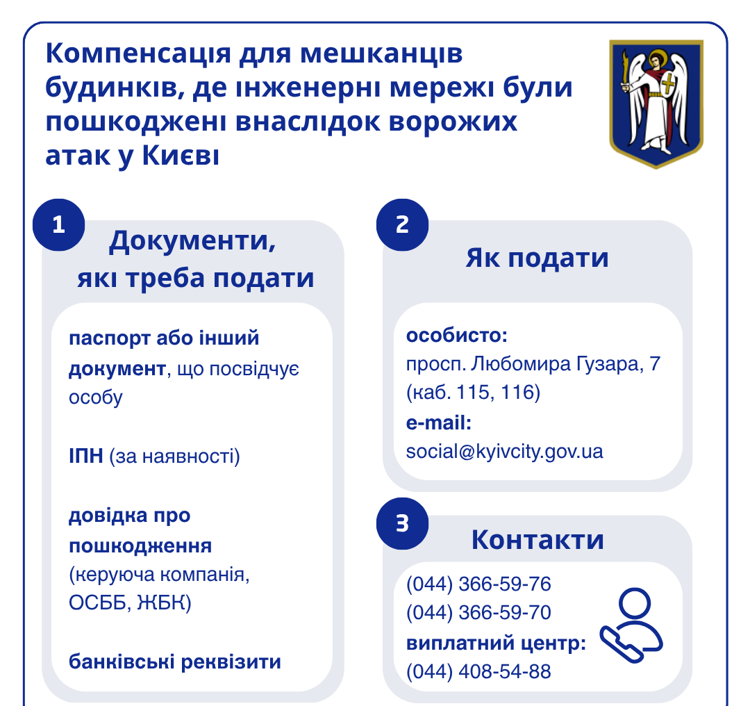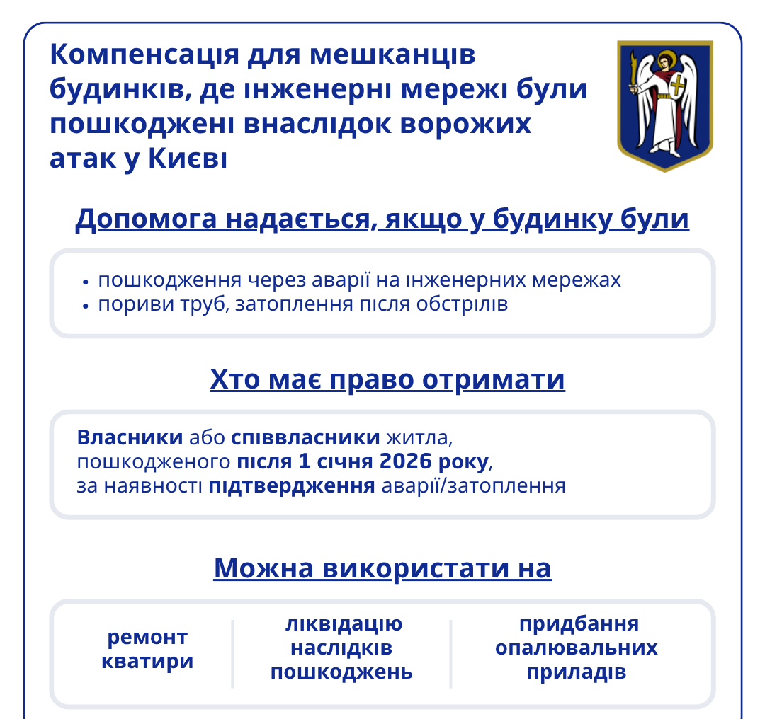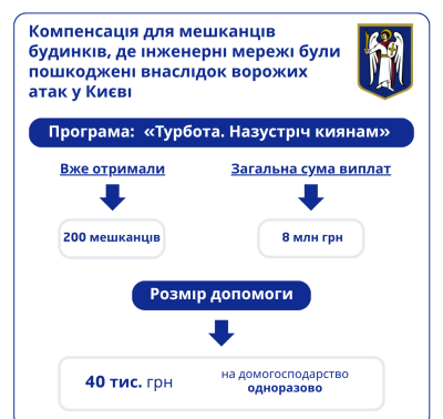 У Києві вже 200 мешканців будинків, де інженерні мережі були пошкоджені внаслідок ворожих обстрілів, отримали по 40 тис. грн