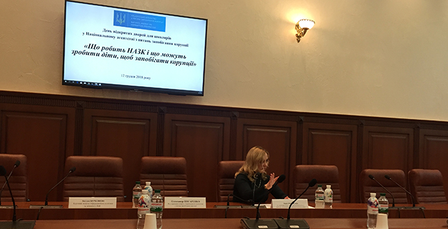 Учні освітніх закладів Подільського району взяли участь у відкритому уроці, присвяченому питанням запобігання корупції, який відбувся в залі засідань Національного агентства з питань запобігання корупції.