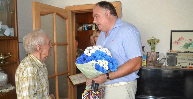 Шанованому ювіляру подякували за виявлену мужність і героїзм у роки війни, за невтомну працю у післявоєнний час, вручили подарунки та побажали міцного здоров’я, сили, бадьорості та злагоди в оселі.