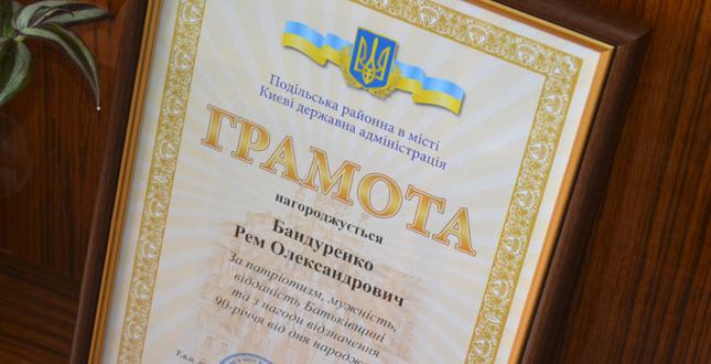 13 серпня відзначив свій поважний 90-річний ювілей житель Подільського району, Почесний ветеран міста Києва, інвалід Великої Вітчизняної війни І групи, учасник бойових дій, ветеран Збройних Сил - Бандуренко Рем Олександрович