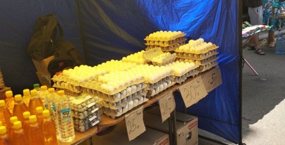 На міні-ярмарку (96 торгових точок) представлені такі групи товарів: яйця, молочна продукція, риба морожена, овочі, м’ясо, ковбаси, мед, бакалія тощо.