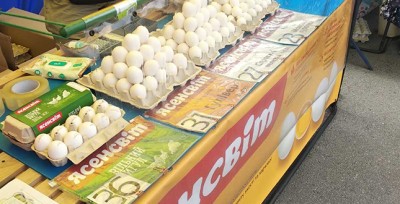 На міні-ярмарку (64 торгові точки) представлені такі групи товарів: яйця, молочна продукція, риба морожена, овочі, м’ясо, ковбаси, мед, бакалія тощо.