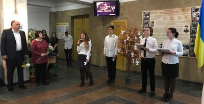Учасники заходу поклали квіти до меморіальної дошки Герою України, Герою Небесної Сотні Олександру Плеханову – учню гімназії № 19 «Межигірська».