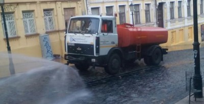 З метою збереження асфальтобетонного покриття у спекотну погоду працівники КП ШЕУ Подільського району активно виконують роботи з поливу доріг у всіх частинах району. Минулими вихідними вони зробили полив дорожнього покриття на Андріївському узвозі, Контрактовій площі, на вулицях Новокостянтинівській, Сагайдачного, Кирилівській та інших.