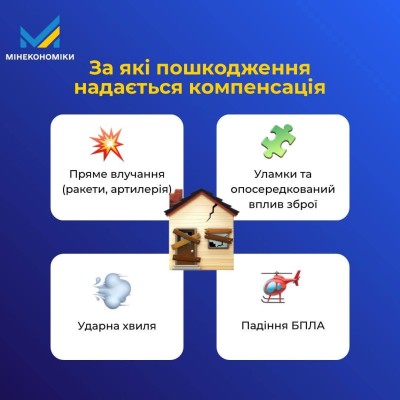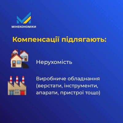 Відтепер компенсації підлягає не лише нерухомість, а й виробниче обладнання (верстати, апарати, інструменти, пристрої тощо), що використовуються в основній діяльності. На етапі подачі заявки скасовано вимогу надавати Звіт про оцінку майна, підприємець самостійно вказує суму ймовірного збитку в заявці.