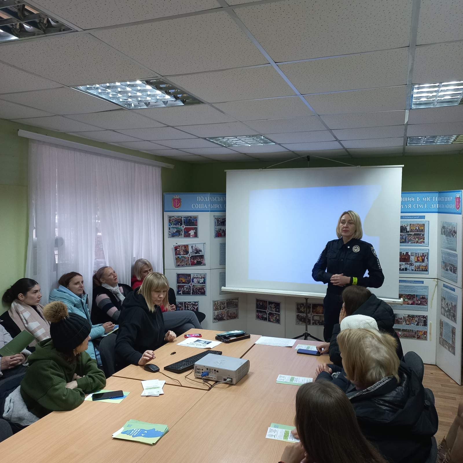 До Центру були запрошені мешканці подільського району, яким фахівці Центру разом з представниками поліції розповіли про різні види насильства, надали рекомендації присутнім, як убезпечити себе від різних його проявів, розповіли про план дій, якому треба слідувати у випадку, якщо зіткнувся з насильством та контакти організацій, які можуть надати допомогу у даних кризових ситуаціях.