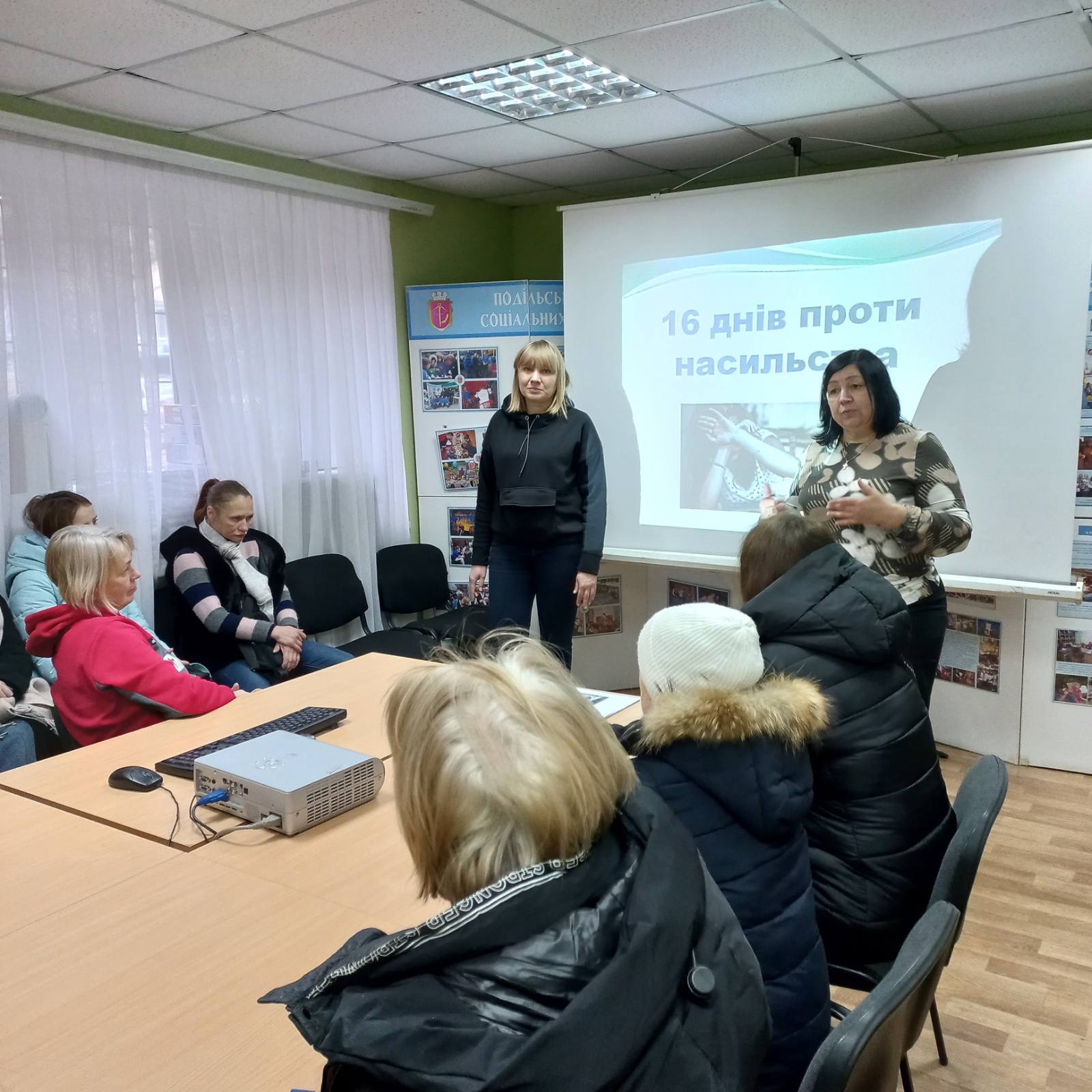 В рамках Всесвітньоі акції «16 днів проти насильства» спеціалісти Подільського районного в місті Києві центру соціальних служб провели захід присвячений темі запобігання домашньому насильству.
