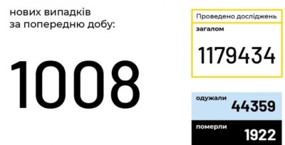 В Україні зафіксовано 1 008 нових випадків коронавірусної хвороби COVID-19