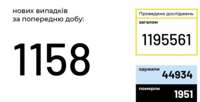 В Україні зафіксовано 1 158 нових випадків коронавірусної хвороби COVID-19