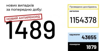 В Україні зафіксовано 1489 нових випадків коронавірусної хвороби COVID-19 — це антирекорд з кількості нових хворих за добу