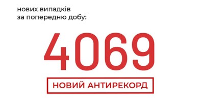В Україні зафіксовано 4 069 нових випадків коронавірусної хвороби COVID-19 — це антирекорд кількості нових хворих за добу