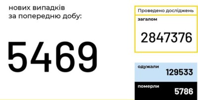 В Україні зафіксовано 5 469 нових випадків коронавірусної хвороби COVID-19