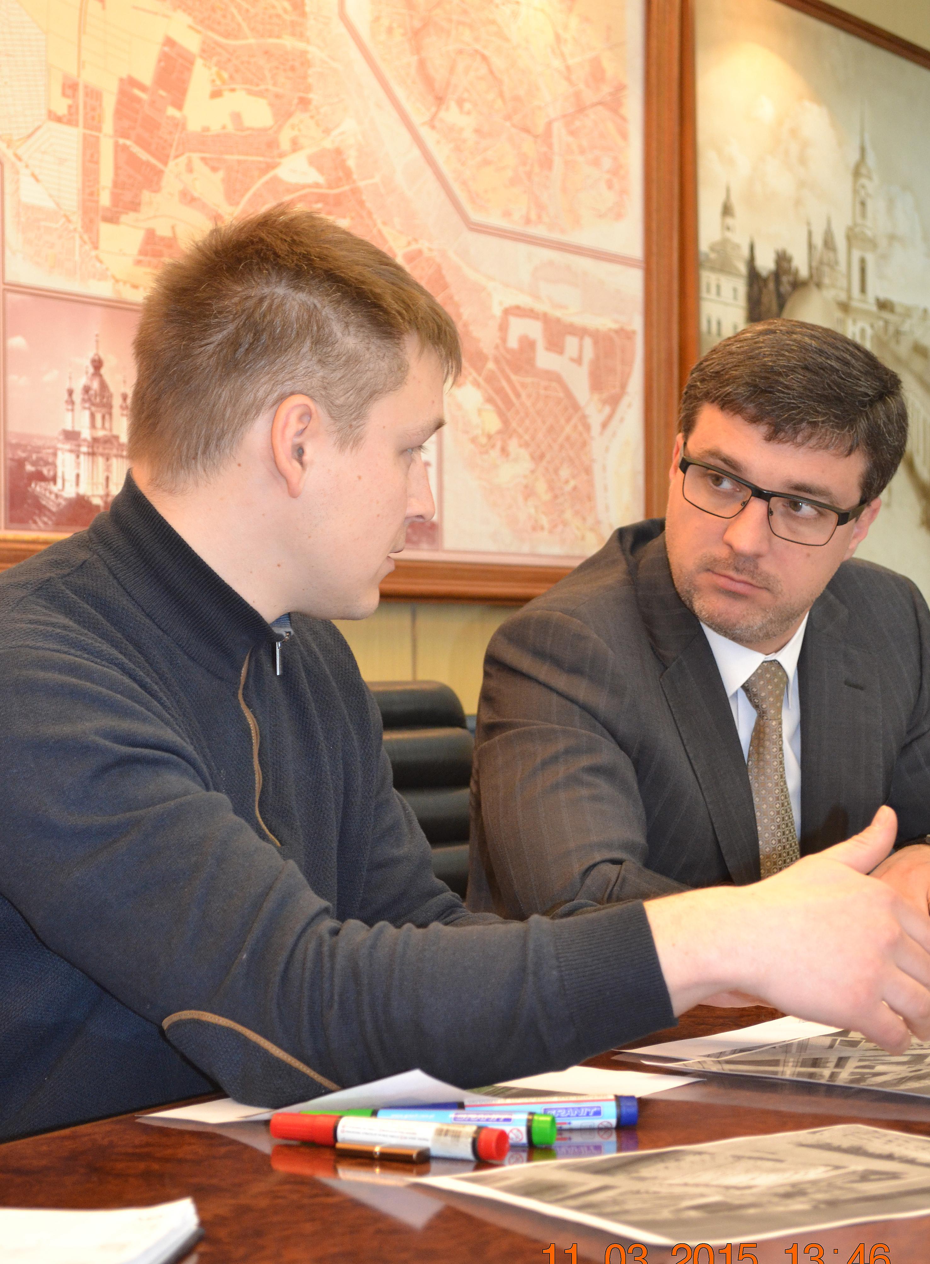 Керівник Подільського району Валентин Мондриївський провів робочу зустріч з архітектором Станіславом Дьоміним та керівниками структурних підрозділів райдержадміністрації щодо функціонування скверу №3 на Контрактовій площі та впорядкування тимчасових споруд.