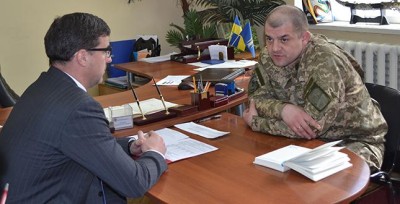 Під час зустрічі керівник району та військовий комісар обговорили питання соціальних гарантій учасників АТО, призову на строкову службу та виділення приміщення для військкомату.