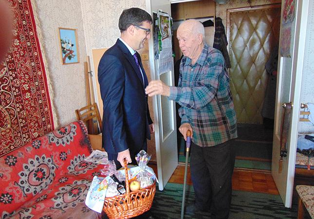 Напередодні Великодня голова Подільської райдержадміністрації відвідав ветерана війни, інваліда ІІ групи, підопічного районного Територіального центру соціального обслуговування громадян, Якова Федоровича Мудрого. З нагоди свята Пасхи керівник району привітав його святковим кошиком та вітальними словами. «Прийміть наші щирі побажання добра, здоров’я та радості. Нехай Божа благодать наповнює ваше серце та домівку», - побажав чоловіку Валентин Миколайович.