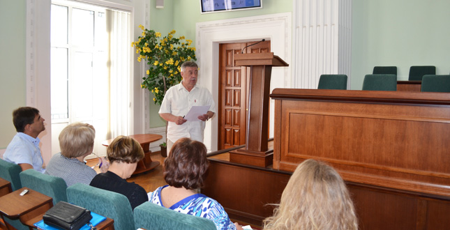 Відкриваючи нараду, голова райдержадміністрації Валентин Мондриївський подякував всім, хто долучився до прибирання та благоустрою території скверу на Контрактовій площі, та зауважив, що завершення його реконструкції заплановано у вересні-жовтні цього року.