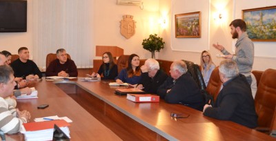 На засіданні виступили представники громадської організації «Старий Поділ» щодо повернення демонтованого пам’ятника «Камінь – зброя пролетаріату» біля кінотеатру «Жовтень».