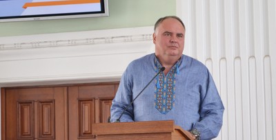 Перед початком заходу присутні в залі вшанували хвилиною мовчання українських військових, котрі загинули під Іловайськом у серпні 2014 року.