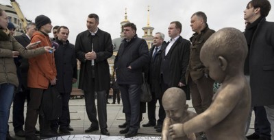 «Вони граються корабликами на карті міста Києва. Це прообраз Кия, Щека, Хорива та їхньої сестри Либеді», – зазначив Віталій Кличко у коментарі журналістам.