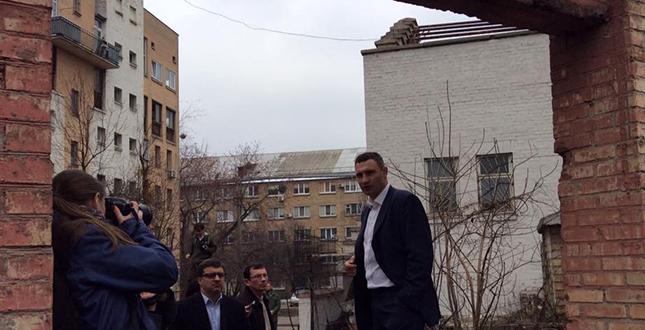Спочатку мер Києва оглянув будівлю на вулиці Ярославській, 20-Б у Подільському районі.