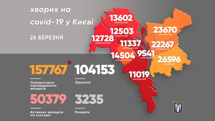 «Ситуація із захворюваністю, на жаль, не поліпшується і залишається складною. Кількість хворих на коронавірус у Києві не зменшується. 1164 інфікованих виявили в місті минулої доби. Померли 37 людей – 19 жінок та 18 чоловіків. Усього за період пандемії в столиці 3235 летальних випадків від вірусу. А підтверджених випадків захворювання в місті на сьогодні 157 767», – повідомив Віталій Кличко.