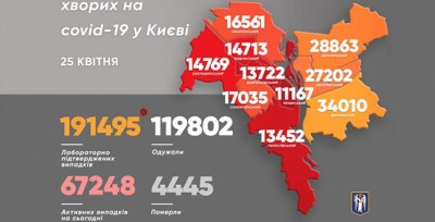 «330 підтверджених випадків захворювання на коронавірус за добу в столиці. Померли 30 людей. Усього за період пандемії в місті 4445 летальних випадків від вірусу. А підтверджених випадків захворювання на сьогодні – 191 495», – повідомив Кличко.