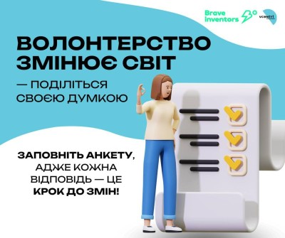 Разом з нашими партнерами платформою Brave inventors від БО БФ "Брейв Фаундейшн" проводимо опитування щодо волонтерського руху в Україні.