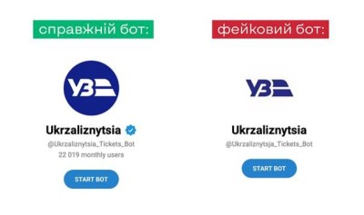 Чатбот єВорог, через якого можна повідомляти про пересування російських військових та техніки РФ, має 6 клонів. А чатбот «Укралізниці» для купівлі квитків має щонайменше 5 двійників. Деякі з цих клонів існують, але не працюють. Тож, натрапивши на такий, ви просто не зможете нічого придбати в той момент, коли дуже треба. Усі ці боти неконтрольовані. І потенційно в будь-який момент їх автори зможуть підробити механізм придбання квитка для того, щоб украсти ваші кошти.
