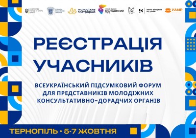Із 5 по 7 жовтня 2024 року заплановано проведення Всеукраїнського підсумкового форуму для представників молодіжних консультативно-дорадчих органів у м. Тернопіль.