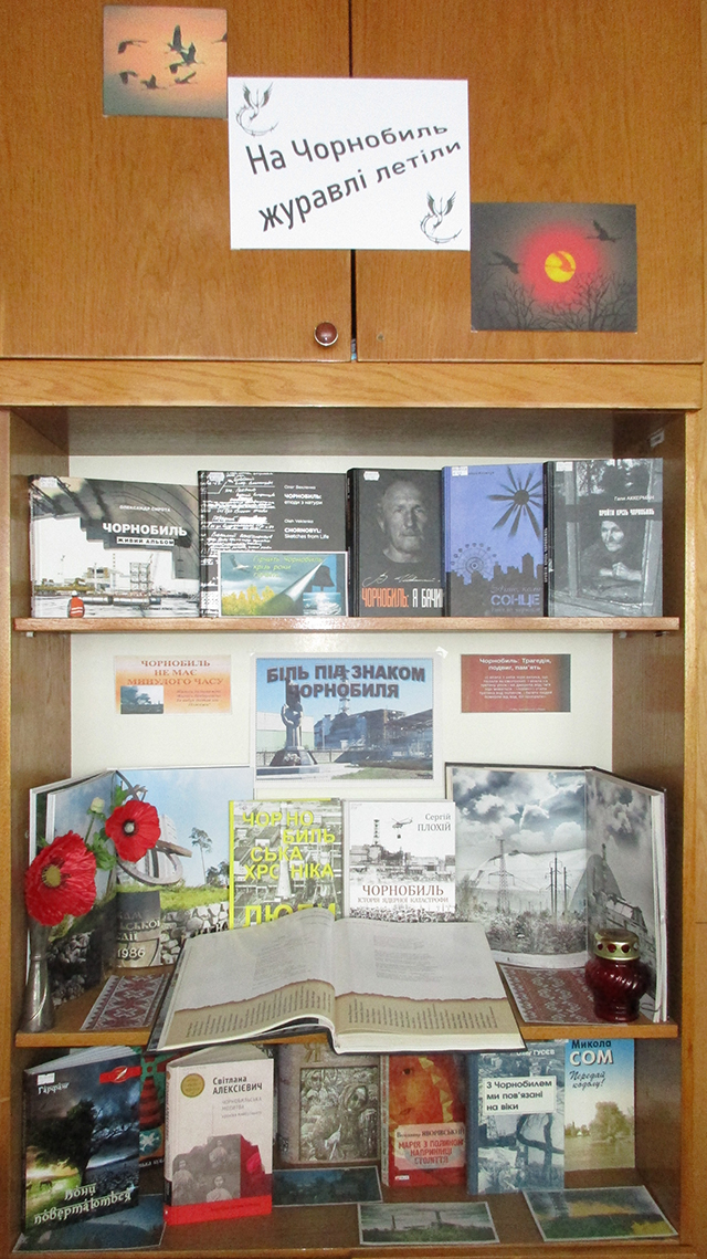 Чорнобильська катастрофа – найпотужніша й найбільша катастрофа, яку коли-небудь спричиняв мирний атом. У житті українців Чорнобиль є раною біллю і втрат, яке не заживає. З нагоди відзначення цієї сумної дати в читальній залі Етнобібліотеки експонується виставка-пам’ять «Летять в Чорнобиль журавлі». На виставці представлені документи, що розповідають про аварію на ЧАЕС та її наслідки. Цього дня людство дякує за героїзм ліквідаторам аварії, згадує про наслідки, які катастрофа принесла довкіллю та людям.