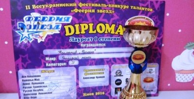 Дівчата з хореографічного колективу «Промінь» (керівник Віталіна Шелковкіна) пройшли до Гала-концерту, вибороли Диплом Лауреатів I ступеня та отримали сертифікат на суму 500 євро на поїдку до Болгарії для участі у Міжнародному конкурсі-фестивалі.