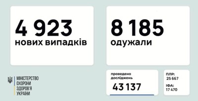 За даними Центру громадського здоров’я, станом на 05 лютого в Україні зафіксовано 4 923 нових підтверджених випадків коронавірусної хвороби COVID-19