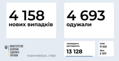 За даними Центру громадського здоров’я, станом на 4 січня в Україні зафіксовано 4158 нових підтверджених випадків коронавірусної хвороби COVID-19