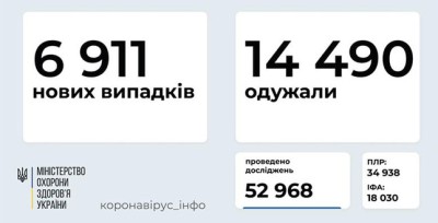 За даними Центру громадського здоров’я, станом на 6 січня в Україні зафіксовано 6911 нових підтверджених випадків коронавірусної хвороби COVID-19