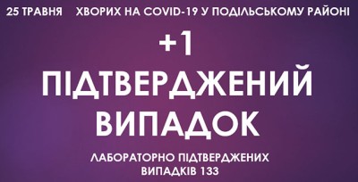 Станом на ранок 25 травня, у Подільському районі за минулу добу зафіксовано 1 новий випадок захворювання на коронавірусну інфекцію.