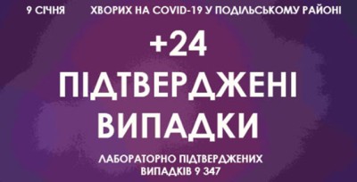 Станом на ранок 9 січня, у Подільському районі зафіксовано 9 347 підтверджених випадків захворювання на коронавірусну інфекцію, з них 24 за минулу добу.