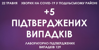 Станом на ранок 22 травня, у Подільському районі за минулу добу 5 підтверджених випадків захворювання на коронавірусну інфекцію.