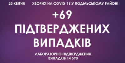 Станом на ранок 23 квітня у Подільському районі зафіксовано 14 590 підтверджених випадків захворювання на коронавірусну інфекцію, з них 69 за минулу добу.