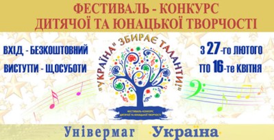 З 18 лютого до 22 квітня 2017 року в приміщенні Універмагу «Україна» відбудеться Київський Фестиваль-конкурс дитячої та юнацької творчості «Україна» збирає таланти!».