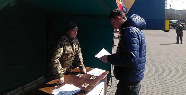 З метою реалізації завдань з відбору кандидатів на військову службу за контрактом Подільський районний у місті Києві військовий комісаріат за сприяння Подільської райдержадміністрації проводить інформаційно-роз’яснювальну роботу та розповсюдження агітаційного матеріалу щодо переваги та перспективи військової служби за контрактом у Збройних Силах України.