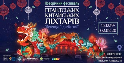 13 грудня о 16:30 відбудеться відкриття новорічного фестивалю гігантських китайських ліхтарів на Співочому полі. Це виставка світлових інсталяцій із новими експозиціями, які перенесуть відвідувачів у таємничий світ казок і легенд Піднебесної. Про це повідомили організатори заходу – компанія Grand Event.