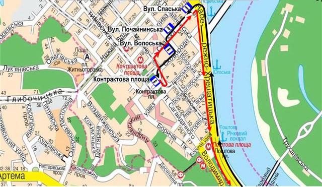 Станом на 10 серпня роботи з реконструкції вул. Братської не завершено, рух автобусів маршруту № 115 здійснюється зі змінами, а саме трасою: Контрактова площа – вул. Межигірська – вул. Спаська – вул. Набережно-Хрещатицька – далі за існуючим маршрутом. Про це повідомили в КП «Київпастранс».