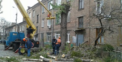 Минулого тижня працівники комунального підприємства «Керуюча компанія з обслуговування житлового фонду Подільського району м. Києва» виконали роботи з кронування і видалення сухостійних та аварійних дерев за адресами: провул. Електриків, 5, вул. Галицька, 14, вул. Копилівська, 10-Б.